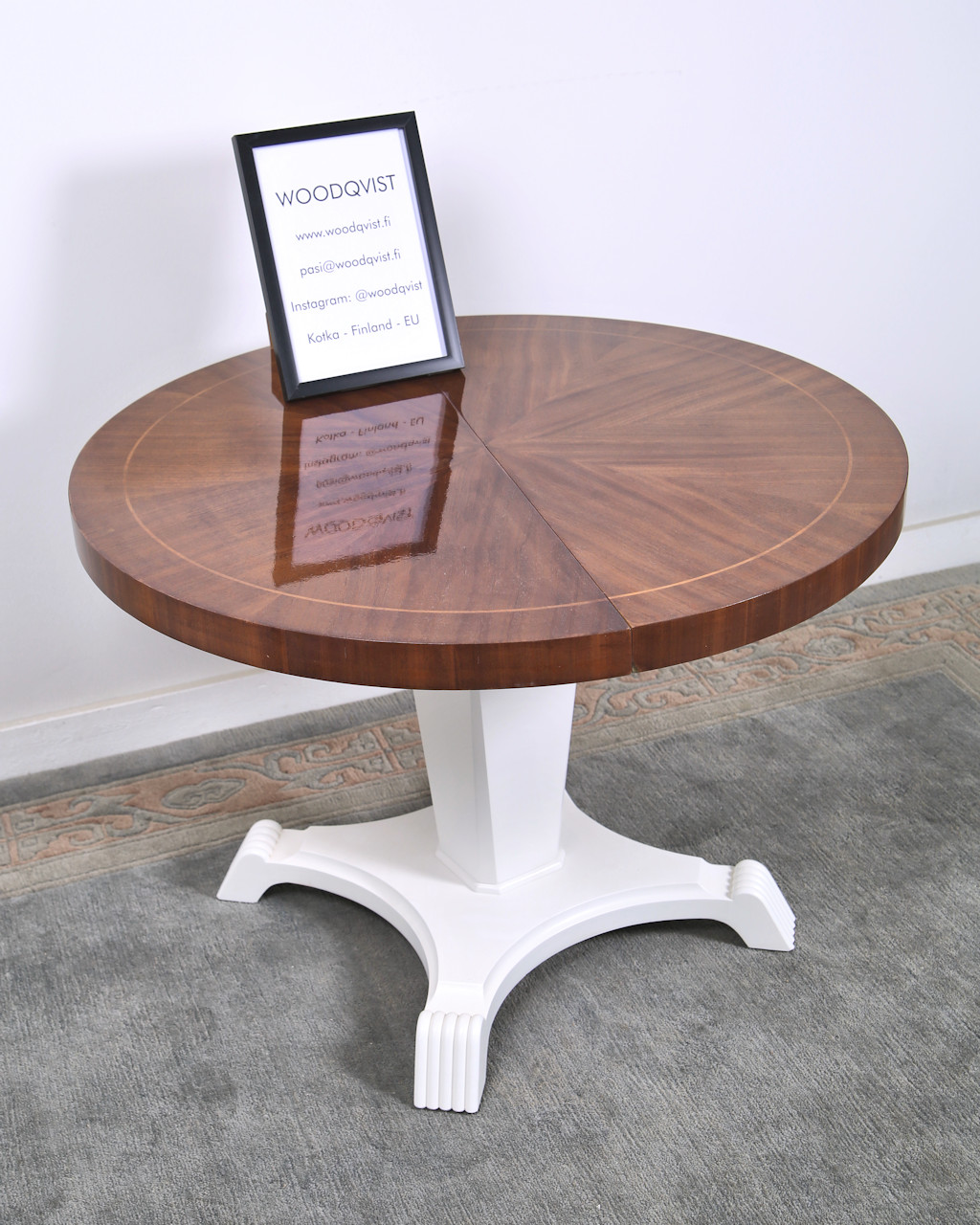 Hieno kahvipöytä on palautettu uudelle kierrokselle. Pitkän entisöintityön päätteksi voi sanoa tyytyväisenä, että tästä tuli hieno!